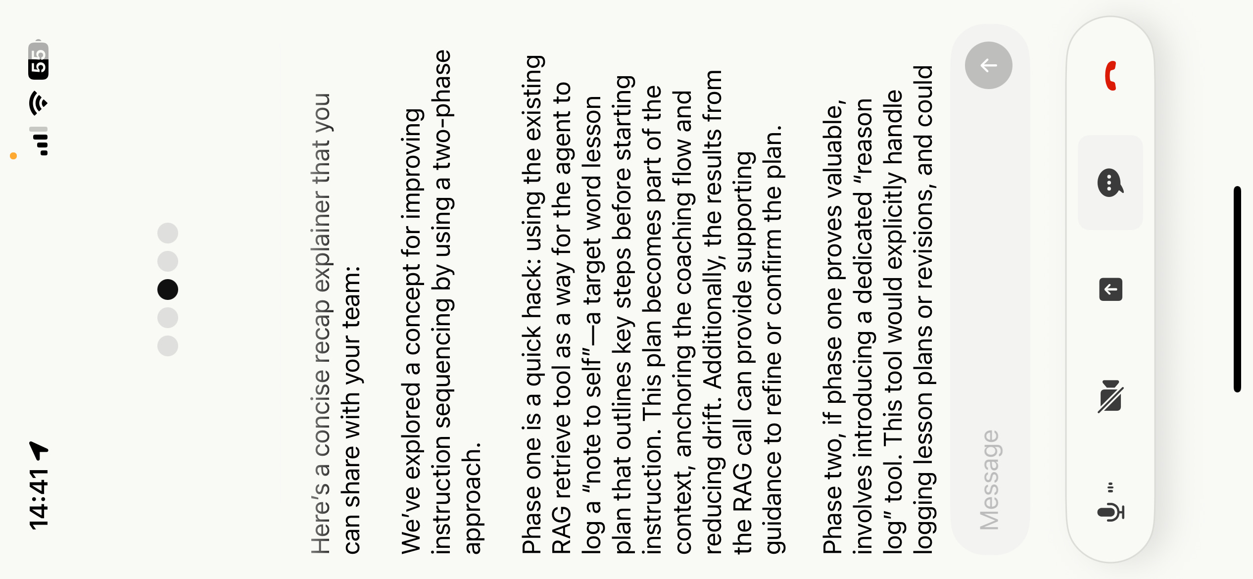 (And that use of a tool call’s input as a way of allowing the agent to do notes-to-self and lightweight reasoning steps — even though the realtime model does not itself offer thinking/reasoning — has proven to be a winner.)